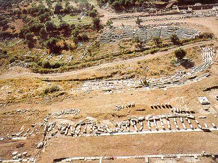 An archaic kore was unearthed on Thera (Santorini) island in November 2000. The statue, which is 2.3 m. high and weighs 750 kilos, is almost complete with only the right arm and the nose end missing.