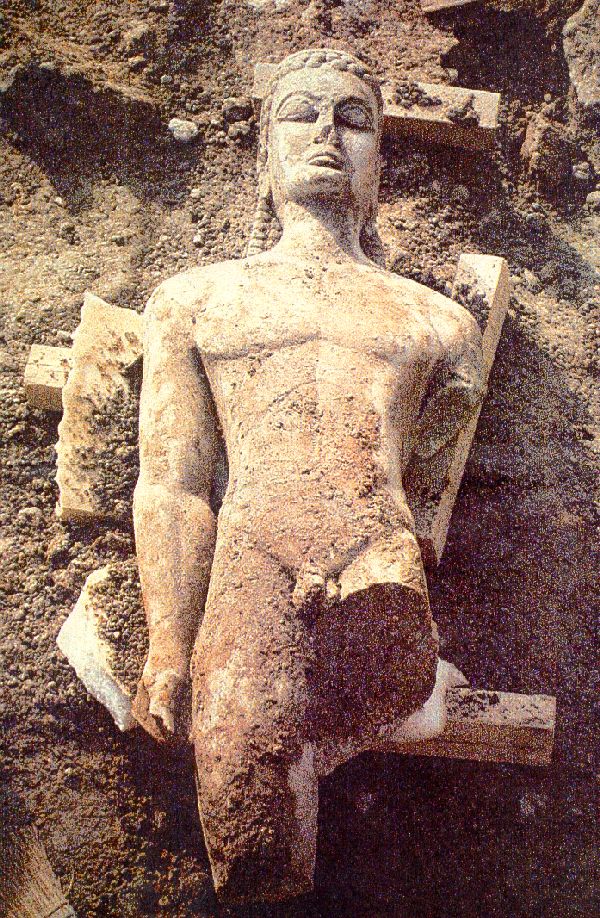 Recent (April 2002) excavations in the Kerameikos (the ancient Athenian cemetery) brought to light a kouros that dates to the middle of the 6th c. BCE. The 2.20 m. tall statue is missing its left arm and leg and has its right leg mutilated. Also, the archaeologists unearthed a marble lion and a sphinx, both works of the 6th c. BCE.