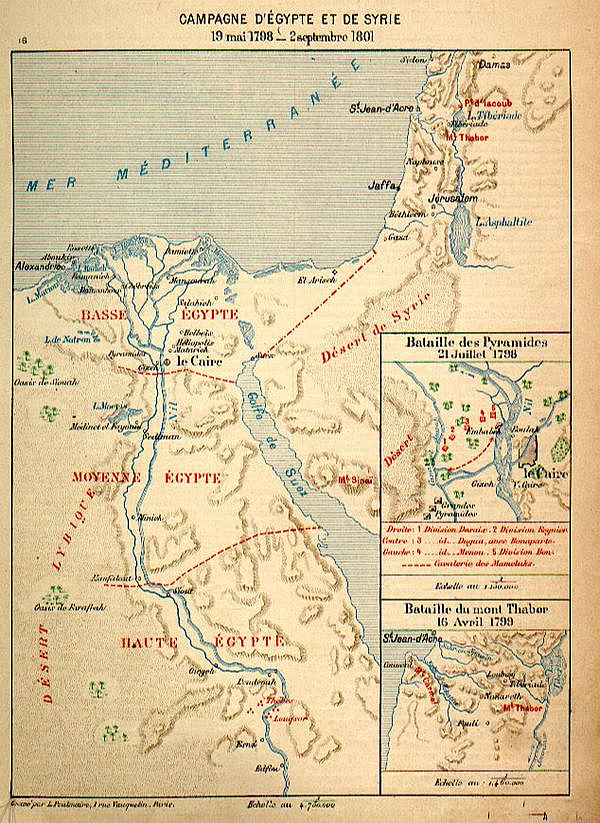In May 1798, 13 battleships, 6 frigates and numerous other vessels carrying 35,000 troops sailed from Toulon with Bonapate in command [4]. Also, 167 artists, scholars and scientists took part in the expedition; the result of their excellent work was published later in 32 volumes under the title Description de l' Egypte [5].