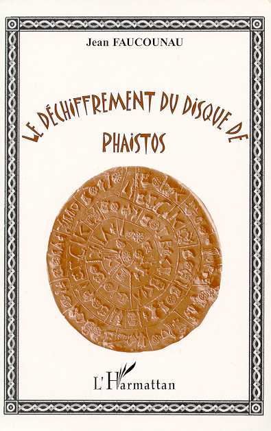 J. FAUCOUNAU1- DUHOUX Yves, "Le Disque de Phaestos", Louvain 1977 2- FAUCOUNAU Jean, "Le déchifferement du Disque de Phaistos", Paris 1999. 3- ______________,"Du Disque de Phaistos aux écritures proto-Philistines" (in print) 4- OLIVIER Jean-Pierre, "Le disque de Phaistos. Edition photographique, B.C.H. 99, Paris 1975