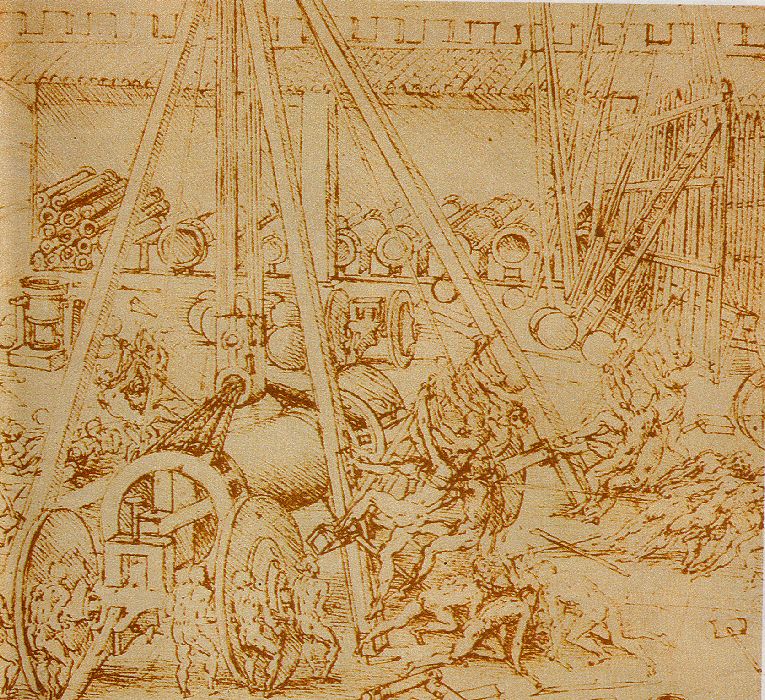 Ωστόσο δε θέλησε να προχωρήσει στην τεχνική περιγραφή του όπλου αυτού. Το μυστικό διατηρήθηκε έναν ολόκληρο αιώνα μετά το θάνατο του Πετράρχη και παρουσιάστηκε από έναν άλλο συλλέκτη αρχαίων χειρογράφων, ο οποίος μάλιστα την ιδιοποιήθηκε. Πρόκειται για το διάσημο Ιταλό ζωγράφο και μηχανικό Λεονάρντο Ντα Βίντσι (1452-1519) που στην πραγματεία του με τίτλο Architronio παρουσίασε το παραπάνω τηλεβόλο.