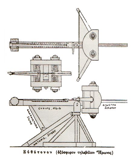 Οι προηγούμενοι από μας συγγραφείς έγραψαν πολλές πραγματείες για την κατασκευή τηλεβόλων και καθιέρωσαν μέτρα και διατάξεις γι' αυτές. Επειδή όμως κανένας από αυτούς δεν παρουσίασε την κατασκευή και τη χρήση των μηχανών κατάλληλα, αλλά διαπραγματεύθηκε το θέμα νομίζοντας ότι όλοι οι άνθρωποι είναι ειδικοί και θα το κατανοήσουν, νομίζουμε ότι πρέπει να παρουσιάζουμε το θέμα από την αρχή για να γίνει αμέσως κατανοητό. θα αναφερθούμε δηλαδή στην κατασκευή τηλεβόλων γενικά και στη συνέχεια, στα μέρη, στις ονομασίες, στη σύνθεση, στη σύνδεση, στις διατάξεις, και στη χρησιμοποίηση καθενός από αυτά. Από τα τηλεβόλα λοιπόν, άλλα μεν καλούνται ευθύτονα, άλλα δε παλίντονα. Μερικοί ονομάζουν τα ευθύτονα σκορπιούς, λόγω της ομοιότητας του οχήματος τους με τους σκορπιούς. Τα μεν ευθύτονα βάλλουν μόνο βέλη, τα δε παλίντονα βάλλουν λίθους, ρίχνουν βέλη ή και τα δύο. Γι' αυτό και μερικοί τα ονομάζουν λιθοβολά. Σκοπός της κατασκευής των τηλεβόλων είναι να κατευθύνουμε το βέλος σε προσδιορισμένο στόχο, ώστε το χτύπημα του να είναι ορμητικό. Γι' αυτό θα πρέπει να υπάρχει και η ανάλογη φροντίδα στα τηλεβόλα. Βέλος ονομάζεται κάθε τι εκτο-ξευόμενο από τα τηλεβόλα ή από άλλη πηγή εκτόξευσης (εννοεί ανθρώπους). Η αρχική ιδέα για την κατασκευή των τηλεβόλων προέρχεται από την ανάγκη της αύξησης του βεληνεκούς των τόξων που έβαλαν τα βέλη με τη χρησιμοποίηση των χεριών. Επιδιώκοντας, οι άνθρωποι, να βάλουν με τα τόξα μεγαλύτερα βέλη για να αυξήσουν το βεληνεκές, έκαναν τις χορδές των τόξων μεγαλύτερες, δηλαδή μεγάλωσαν ανάλογα και τα τόξα. Η μεταβολή αυτή όμως δημιούργησε και την ανάλογη ανάγκη της μεγαλύτερης δύναμης για το τέντωμα της χορδής του τόξου. Για το σκοπό αυτό λοιπόν επε-νόησαν το εξής.