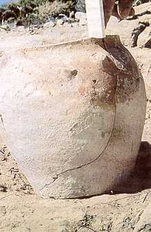 Karpathos is a Greek island between Rhodes and Crete. Prof. M.Melas and his students of the University of Thrace unearthed a Minoan period settlement on the southern part of the island. They found remains of a house and a vase (left) that dates to the neo palatial period (16th-15th c. BCE).