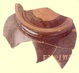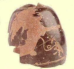 Still another interesting artefact is a big fragment from a lykithos type of vase inscribed with a very nice flying and winged victory. It is a fine piece of late attic pottery.