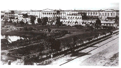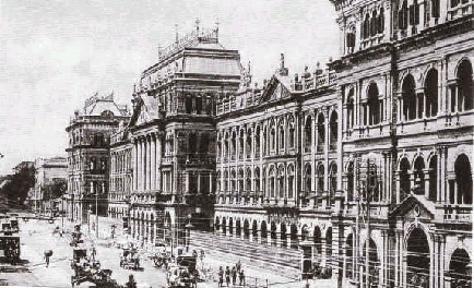 The East India Company commissioned the original Writers' Building to be constructed in one of the three major commerce centers of India. Bombay, Madras and Calcutta, known as the "Presidencies of British India", each served a specific mercantilistic function and as such became the footholds for the East India Company's rise to commercial domination (Pal and Dehejia, 1986: 22). Calcutta's geographical situation, the shores of the Hoogly River, offered deep ports, warehouse space and transportation routes to Europe through the Bay of Bengal (Encarta Encyclopedia 1997, "Calcutta"). In Philip Davies' chapter on Calcutta, suitably titled, "Power on Silt", he discusses an indispensable amenity which the burgeoning town had in abundance-fresh water. The Great Tank is a spring-fed natural reservoir and this feature, for reasons both aesthetic and practical, has incredible value for this study (1985: 47). Calcutta's town common surrounded the reservoir, and so the convenience of Tank Square secured it as the site of Writers' Building (Morris, 1983: 95). The East India Company recognized the practicality and the potential for expansion in choosing this site for their building. Further, the Great Tank provided a visually engaging scene. This declaration of proficiency in terms of choice in location leads to the next focus, which discusses who the patrons were and why the structure was erected to begin with.