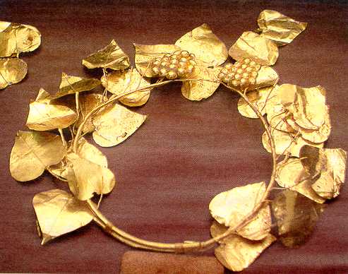 Until today, archaeologists have unearthed only two similar Macedonian wreaths. They claim that they were used by priests during Dionysus feast.