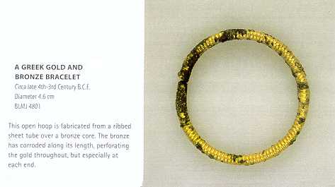 The Dr. Eli Borowski collection of exquisite ancient Greek gold jewelry was exhibited (2001-2002) at the Bible Lands Museum in Jerusalem, Israel. The assemblage included earrings, necklaces, wreathes and rings, some which may have been worn by the elite of the society in Ancient Greece.