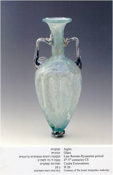Hundreds of undamaged glass vessels have been found in the graves of Castra, as part of the burial offerings. They were found in tombs dating from the Early Roman Period to the Late Byzantine era. All of them were blown glass, a technique invented in the early Roman era. Roman and Byzantine shapes and ornamentation on the glass artifacts uncovered were extremely varied which display the great technical ability and artistry of the craftsmen.